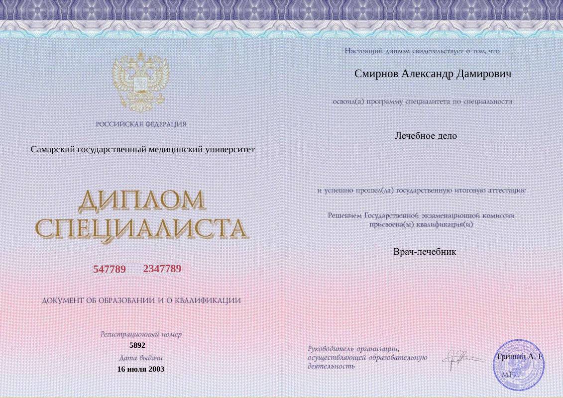 • Самарский государственный медицинский университет: Окончил в 2003 году по специальности "лечебное дело".